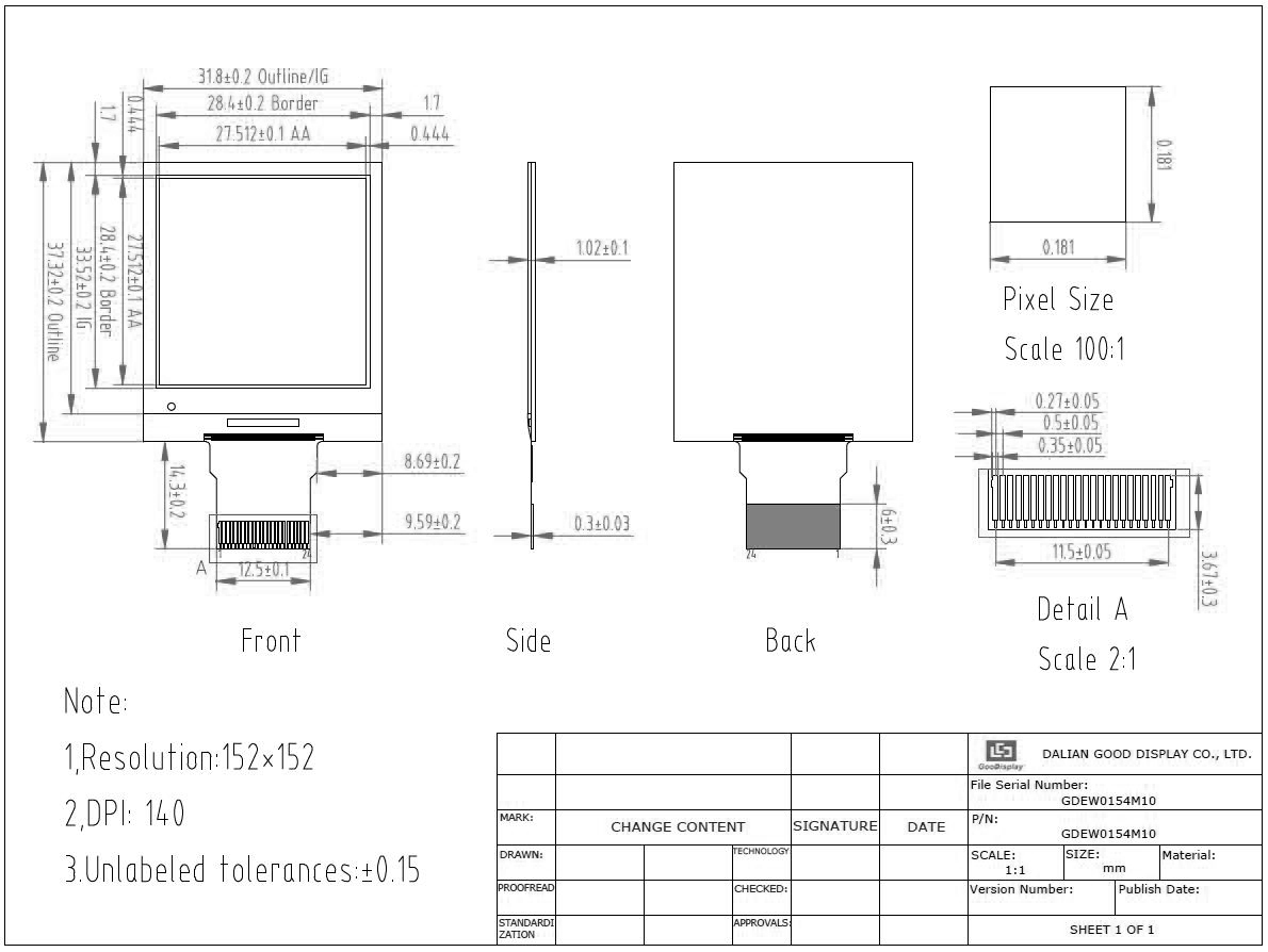 ● GDEW0154M10 Specification