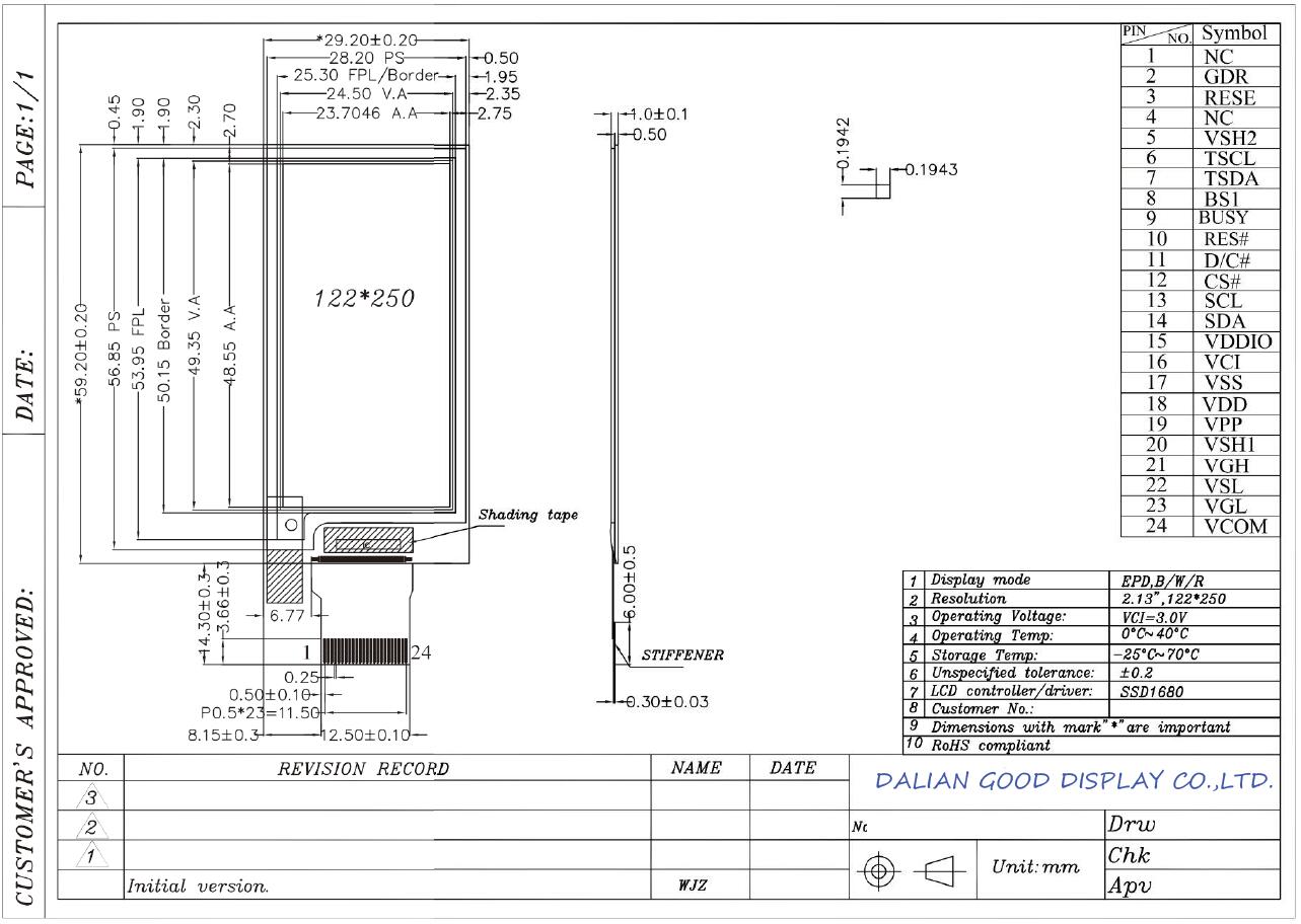 | SIZE | 2.13 inch | INTERFACE | SPI | ||