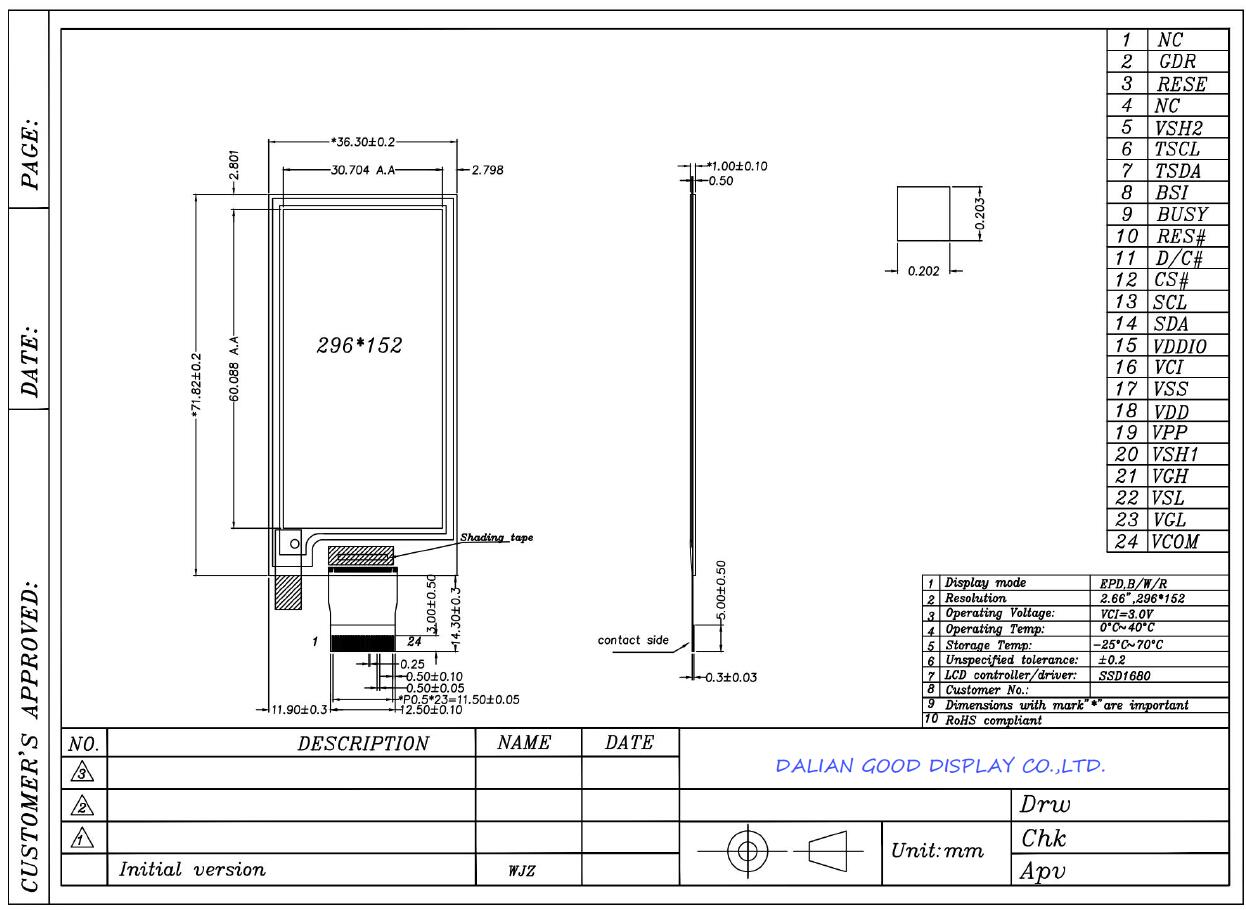 | SIZE | 2.66 inch | INTERFACE | SPI | ||