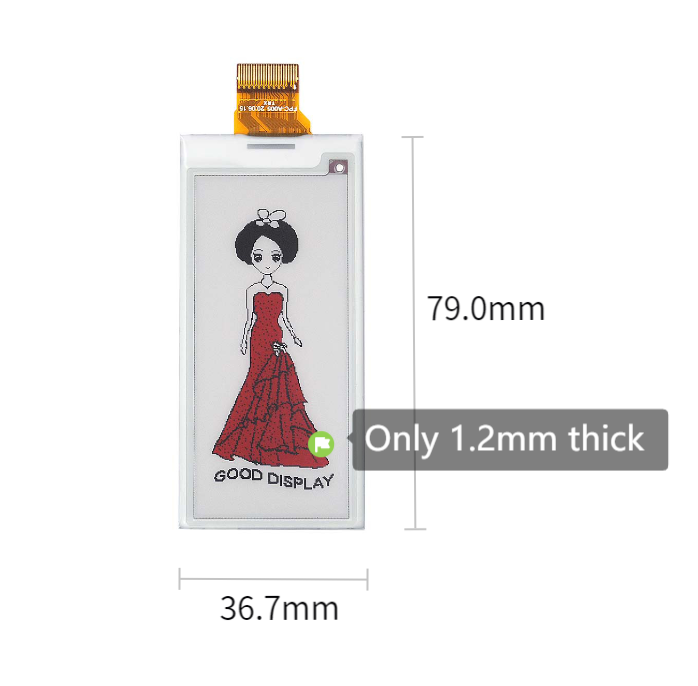 Introducing the GDEY029Z94: Experience the brilliance of our 2.9-inch color ePaper display with a crisp 296x128 resolution and vibrant black, white, and red hues. Once updated, this display holds images indefinitely without power, making it perfect for solar or battery-powered devices. With an SPI interface for seamless integration, it offers reliable performance and energy efficiency for applications requiring long-term static content display. |
