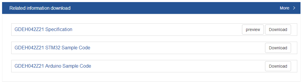 | GDEW042M01 | B/W | 400x300 | DES,wide working temperature range: -20℃~60℃, can be used in sunlight and cold environments | 3S |