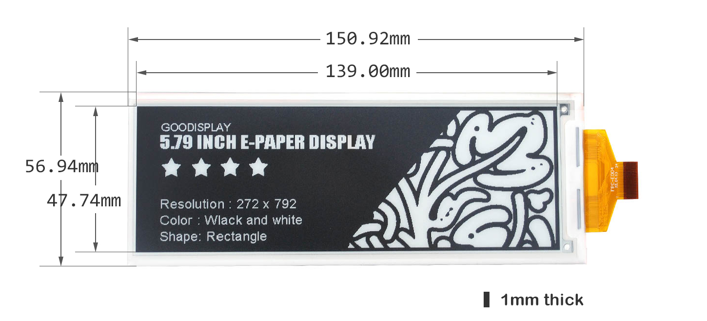 5.79-Inch E-Ink Display Monochrome EPD 792x272 SPI Interface |