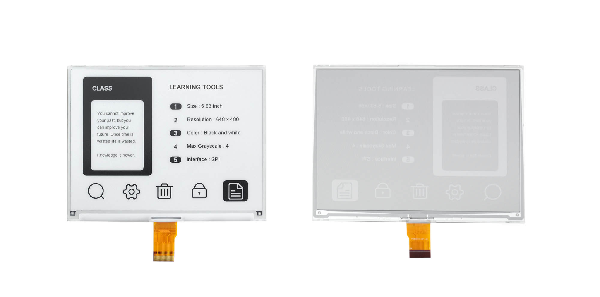 This 5.83 inch eink GDEQ0583T31 is perfect for low power devices powered by solar or batteries, or the products that require slow updates or semi-static content such as digital price tags, electronic shelf labels or signage.