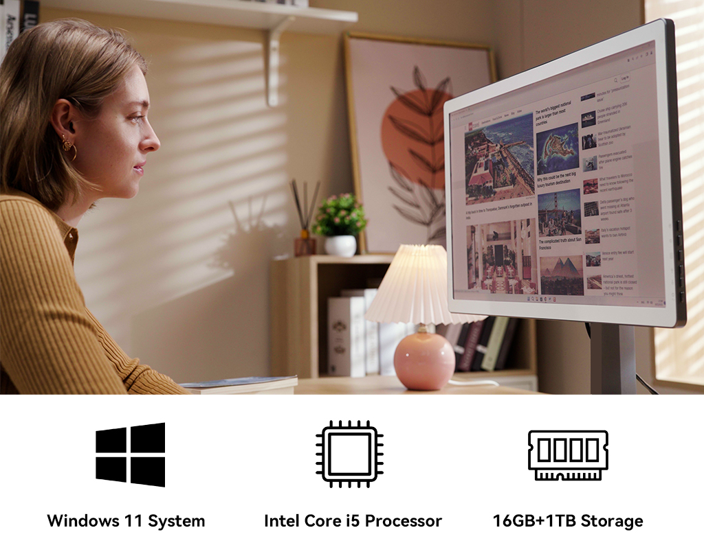 | ● High Resolution and Clarity: Offers a 3200 x 1800 resolution with 3K clarity, ensuring sharp and detailed images. ● Automatic Ghosting Reduction: Keeps the screen clear even after prolonged use, reducing ghosting for an optimal experience whether you're reading, editing, or watching videos. ● Adjustable Refresh Modes and Contrast: Allows you to adjust the refresh rate and contrast for a comfortable viewing experience across different scenarios. ● Fast Refresh E-Ink Display: Equipped with the xRapid driver chip, ensuring smooth and fast refresh rates for seamless document editing and browsing. ● Wireless Screen Casting: Easily project content from other devices onto the display, perfect for meetings or home entertainment. ● Smart Control Features: a. Voice Control: Operate the device using simple voice commands for quick and efficient control. b. Infrared Remote Control: Comes with an advanced infrared remote, allowing you to control the device from a distance without physical contact. c. One-Click PC Tool Flashing: Proprietary PC tool enables one-click flashing for quick and easy updates, enhancing display refresh efficiency and clarity, with adjustable resolution and scaling options. |