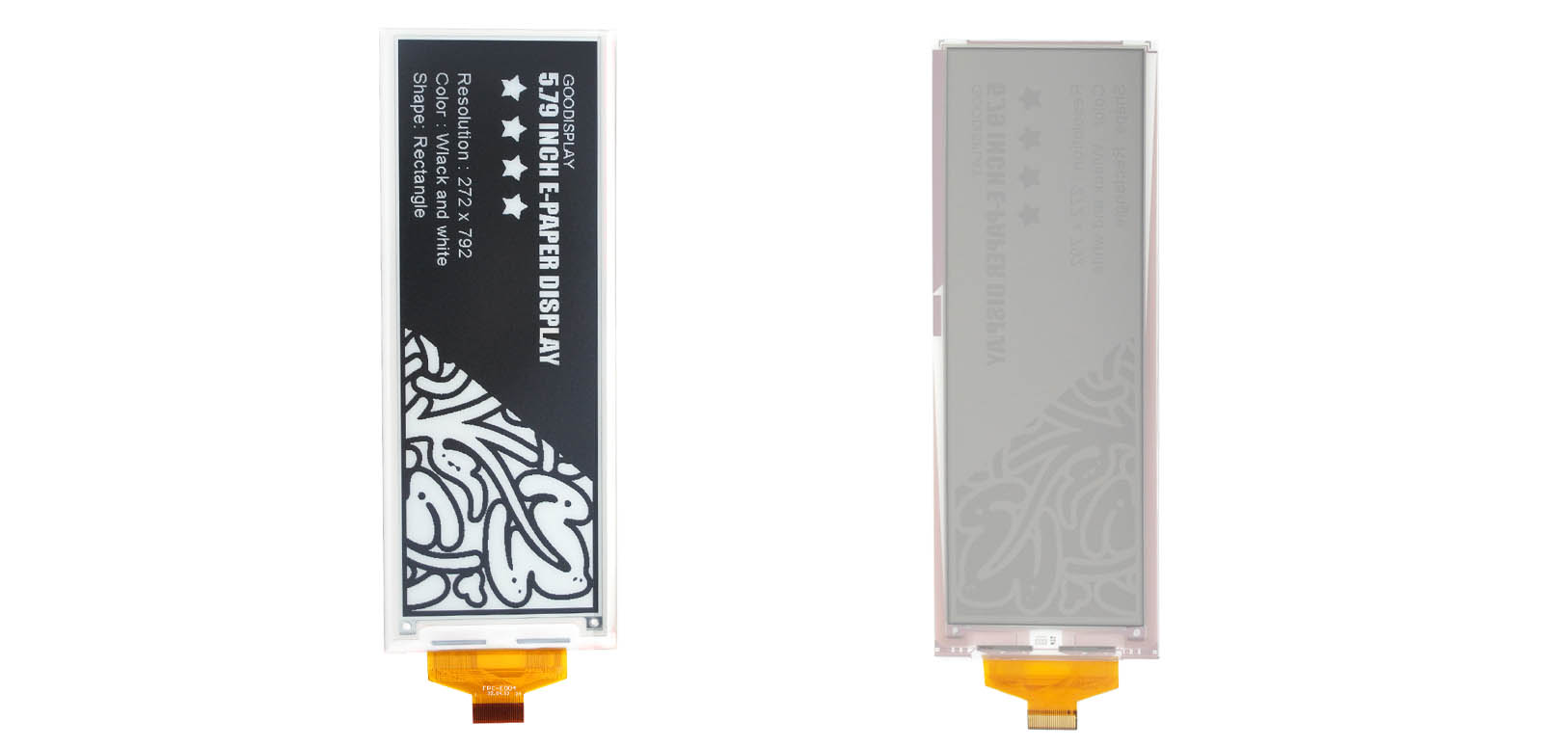 This 5.79 inch e-ink display GDEY0579T93 is perfect for low power devices powered by solar or batteries, or the products that require slow updates or semi-static content such as digital price tags, electronic shelf labels or signage.