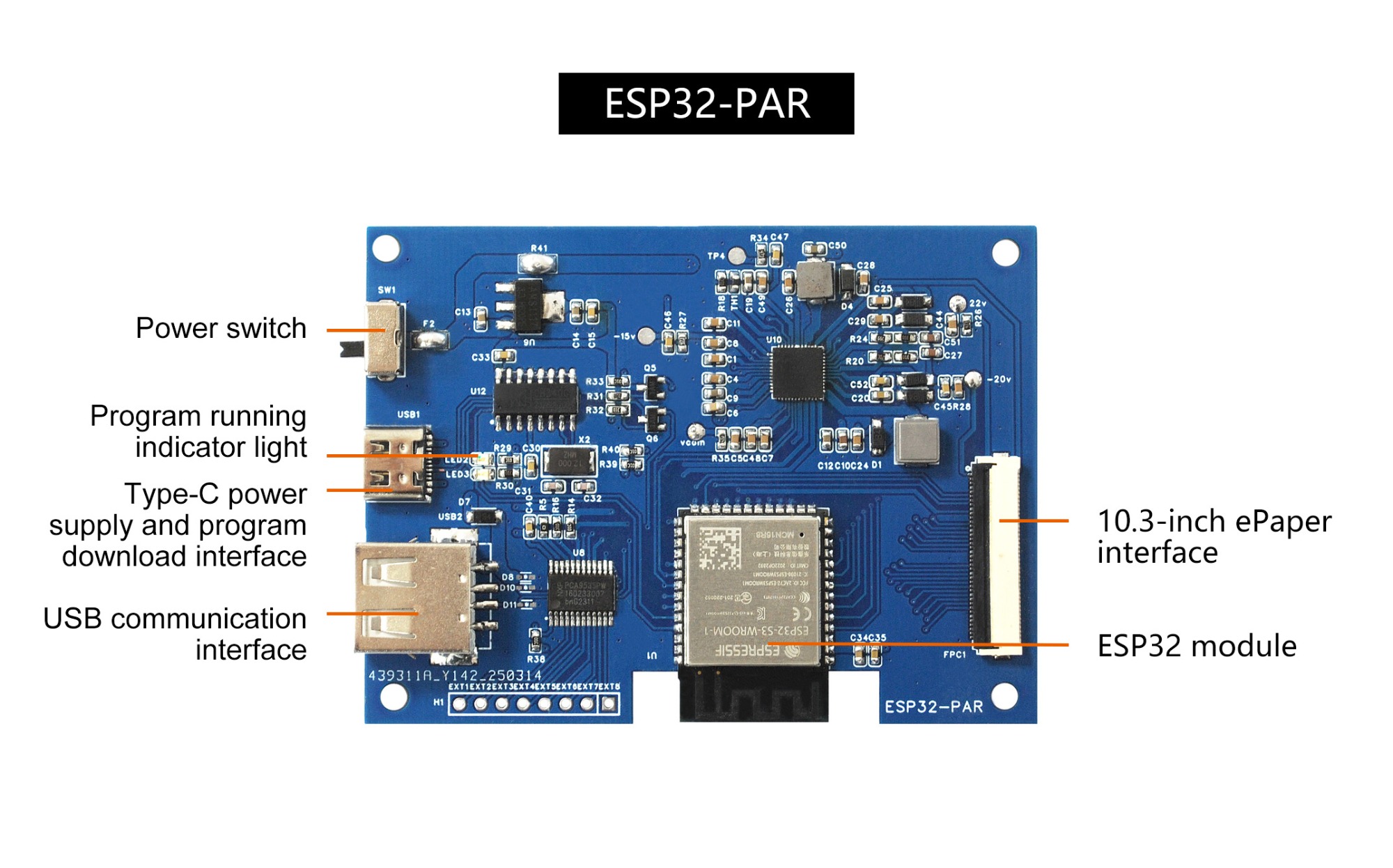 The ESP32-PAR is a powerful development board specifically designed to drive EINK TTL interface e-paper displays. At its core is the ESP32-S3 microcontroller by Espressif, a high-performance, low-power dual-core processor with built-in Wi-Fi and Bluetooth 5.0 connectivity. Perfect for IoT applications and low-power display projects, the ESP32-PAR leverages the ESP32-S3's robust computing power and versatile GPIOs to deliver efficient and reliable e-paper display support. |