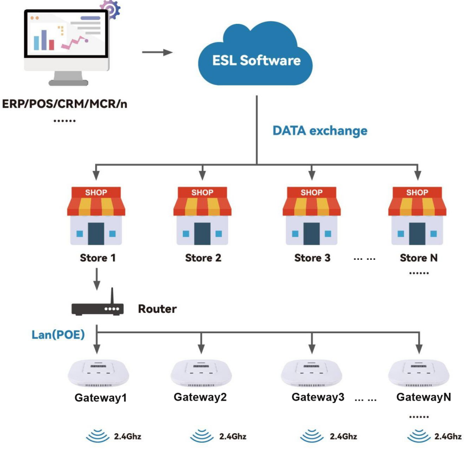 | When using a small number of electronic tags, you don't need cloud servers, ESL management systems, or access points—just a single Android smartphone is sufficient to easily update prices and give your store a modern, sophisticated appearance. | For a larger number of electronic tags, the access point allows for centralized management and remote updates. This setup reduces maintenance costs, saves time, and enhances the store's overall image. |