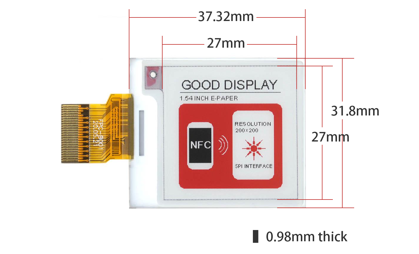 1.54" Tri-Color E-Ink Display Red/Black/White Electronic Shelf Label |
