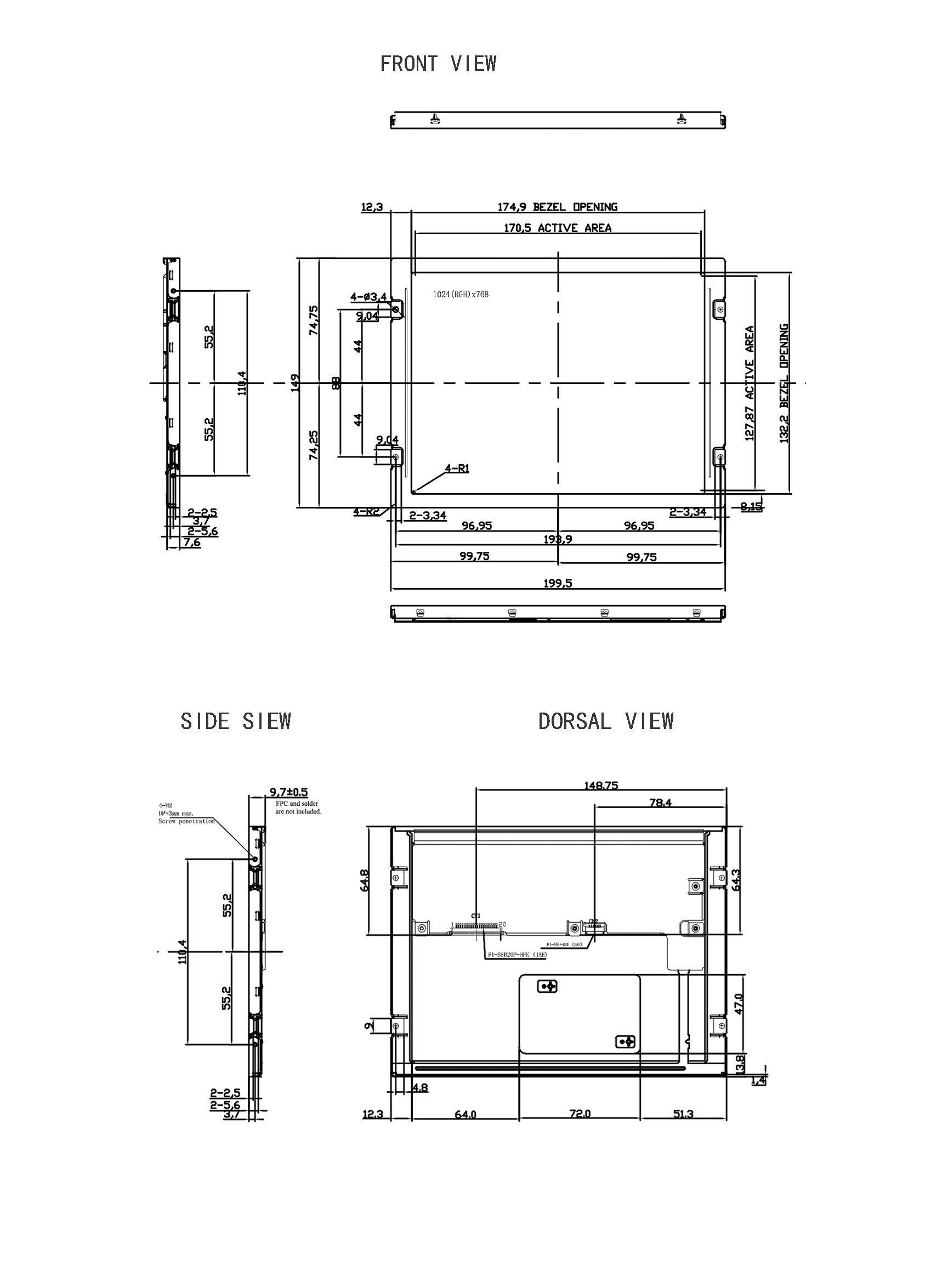 | OUTLINE DIMENSION(mm) | 199.50*149.00*9.7 | VIEWING DIRECTION | Full view |