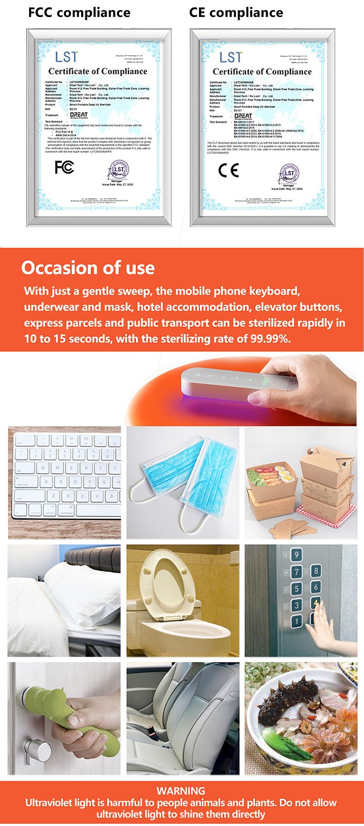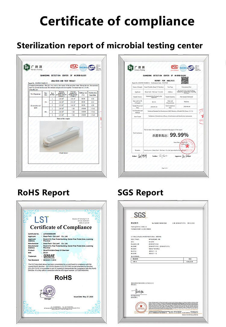 CE/ROHS / FCC/Sterilization report of microbial testing center |